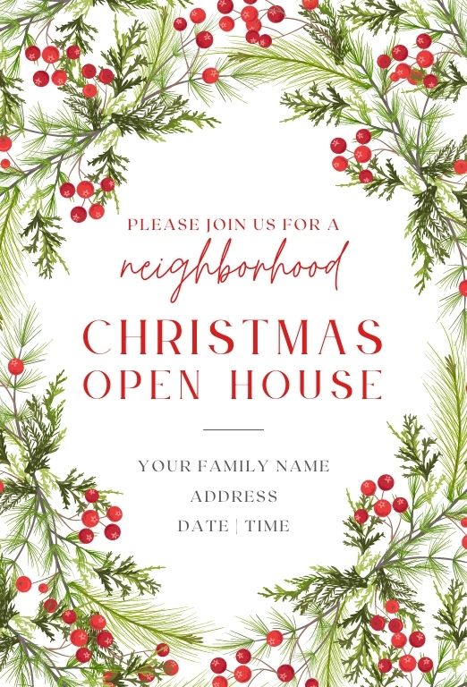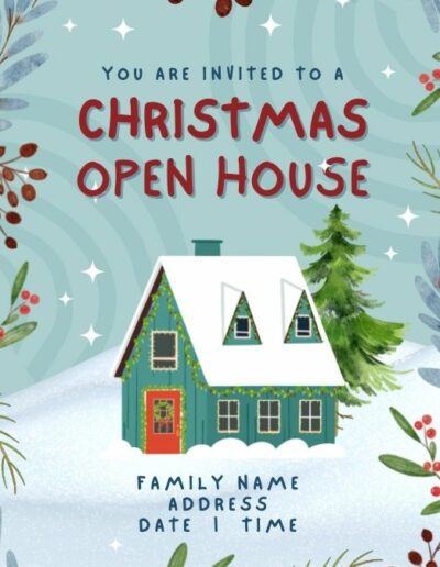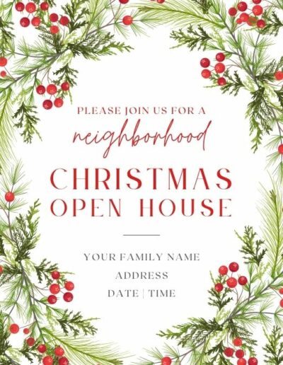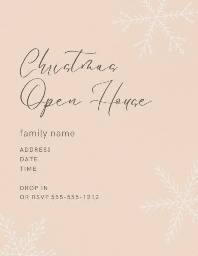 Don’t have time to fill out those free invitations? Choose one of these adorable Christmas Open House Invitations, and I’ll customize it just for you for just $5! Within one business day, you’ll receive a print-quality PDF with four invitations per page, customized with your family name and address along with your Open House date and time.